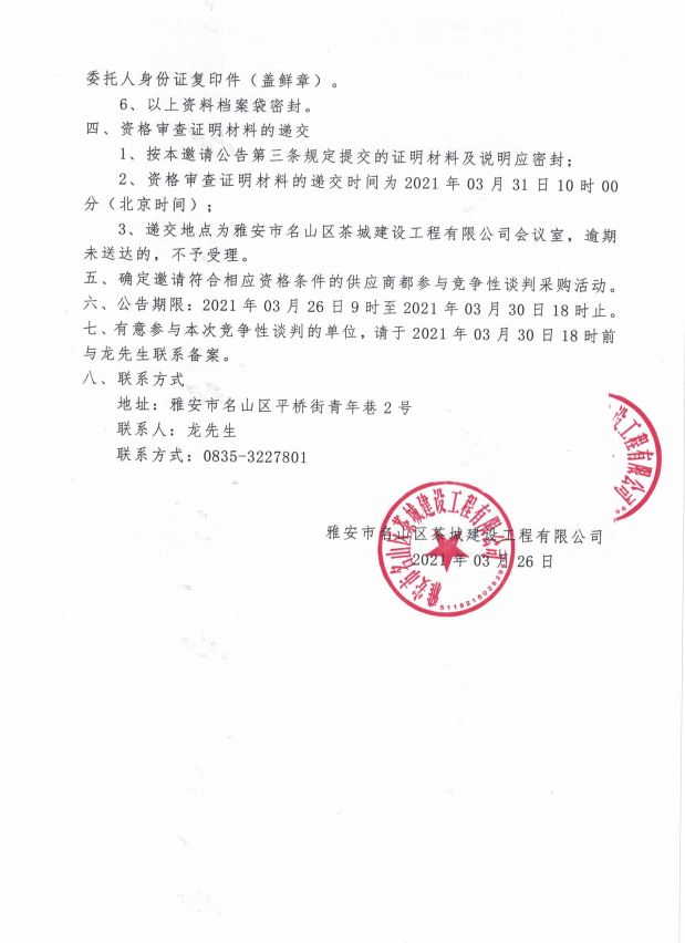 雅安市名山區(qū)茶城建設(shè)工程有限公司及子公司全面審查詢價公告...